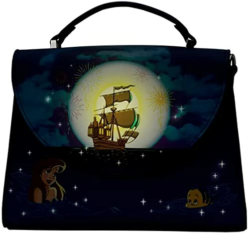 - The Disney The Little Mermaid Ariel Fireworks Glow in the Dark Crossbody Bag is made of vegan leather (polyurethane).