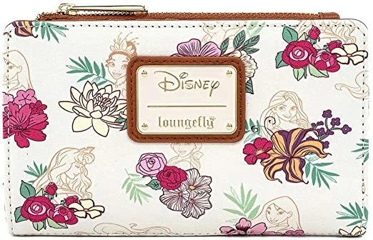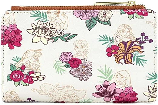 New LOUNGEFLY Disney Princesses Floral Faux Leather Wallet