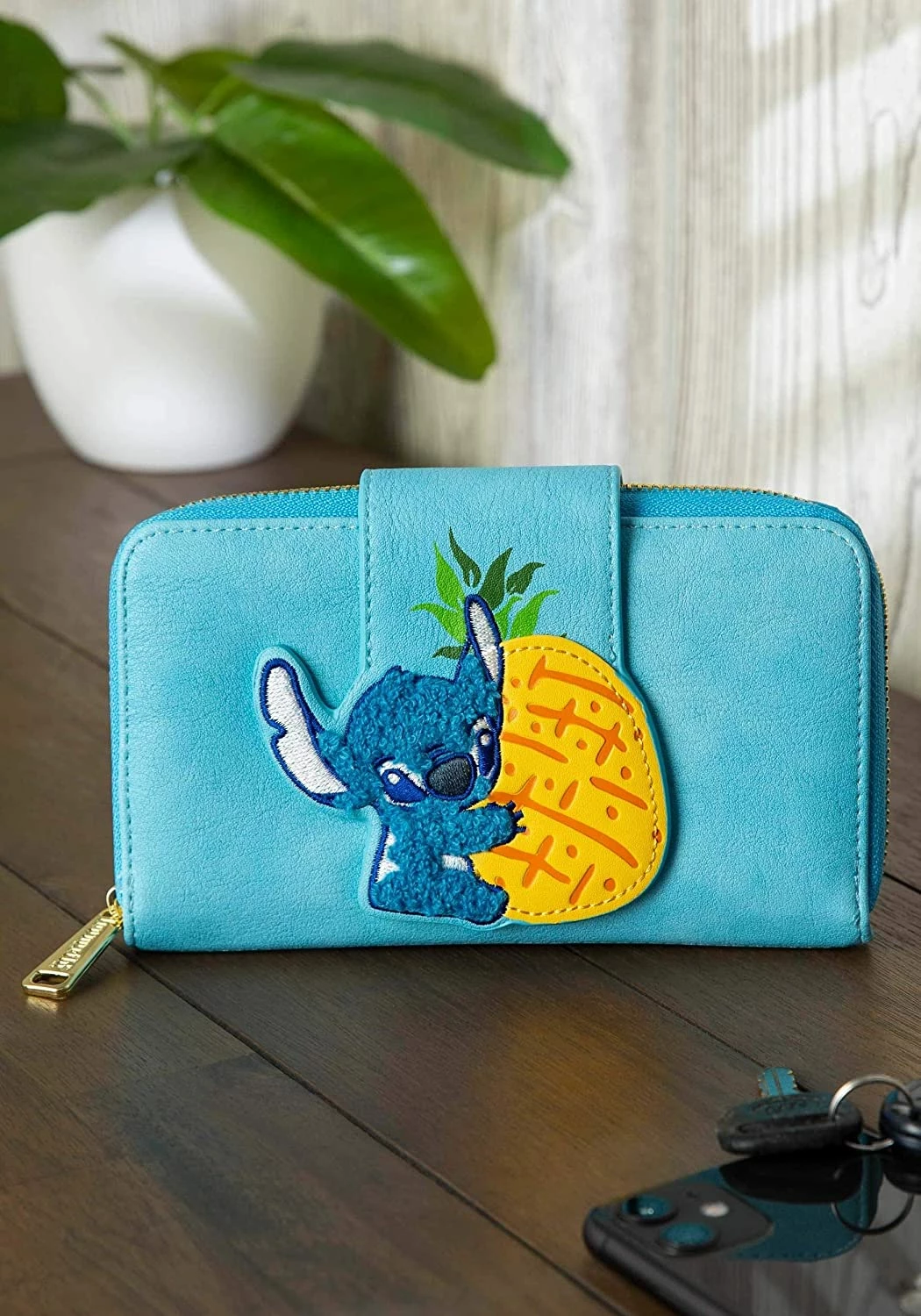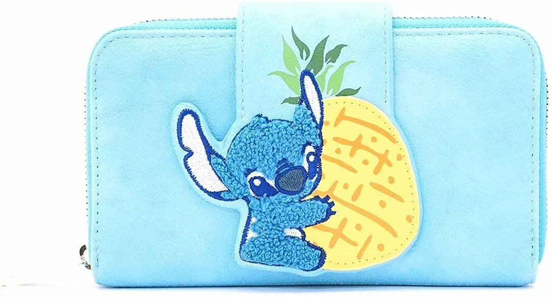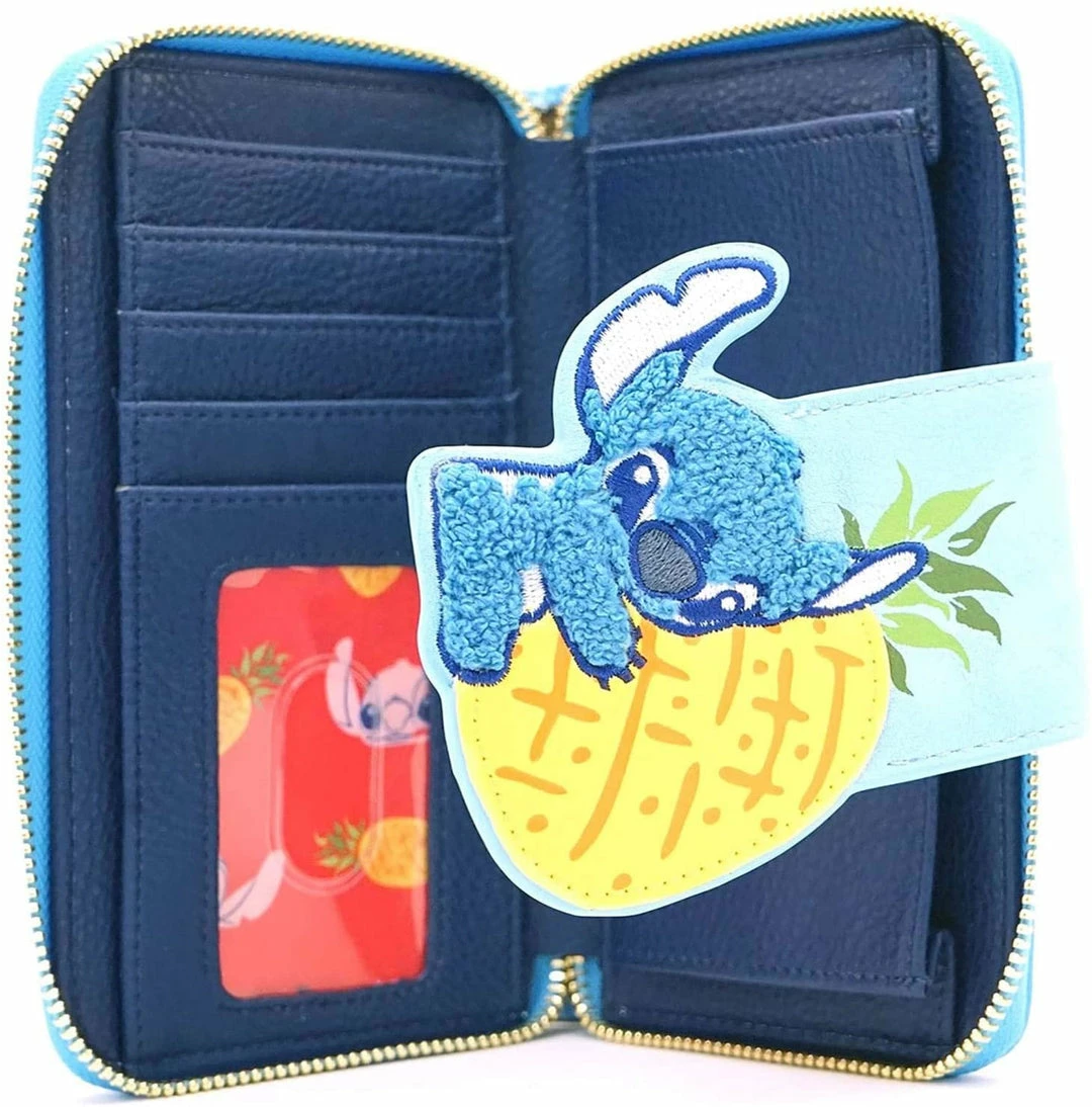 New LOUNGEFLY Lilo And Stitch Pineapple Stitch Chenille Snap Wallet, Blue, Standard