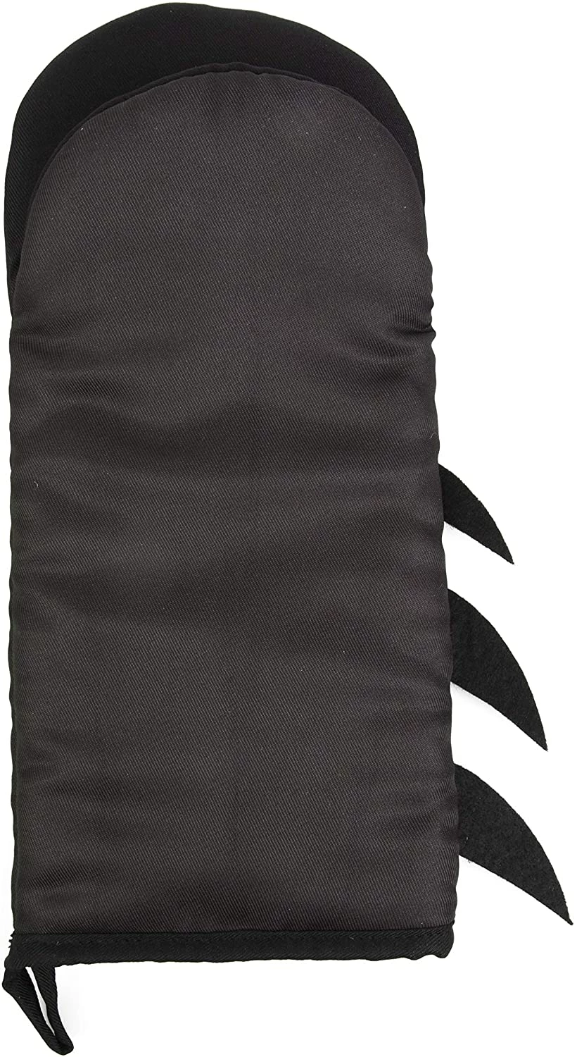 SUPER DESIGN: Set of black oven mitts feature the iconic Bat symbol logo and side guard spike accents!