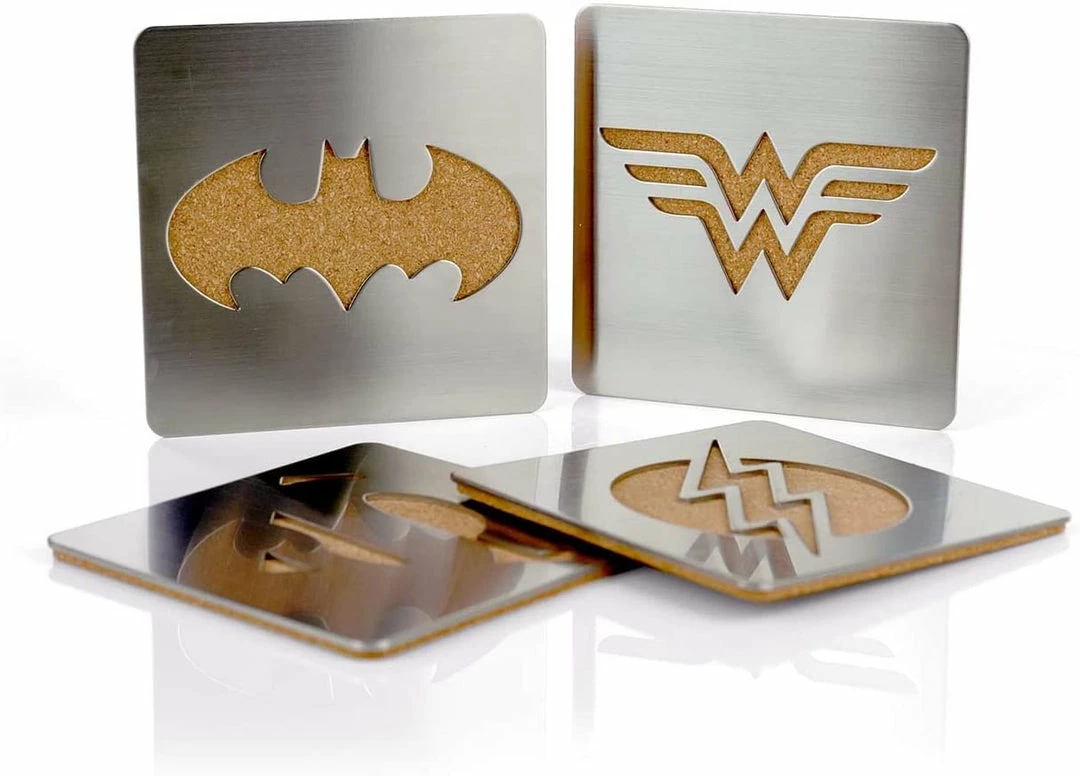 - ICONIC DESIGN: Each laser-cut coaster features a symbol of one of your favorite DC superheroes: Batman, Superman, Wonder Woman, or The Flash.